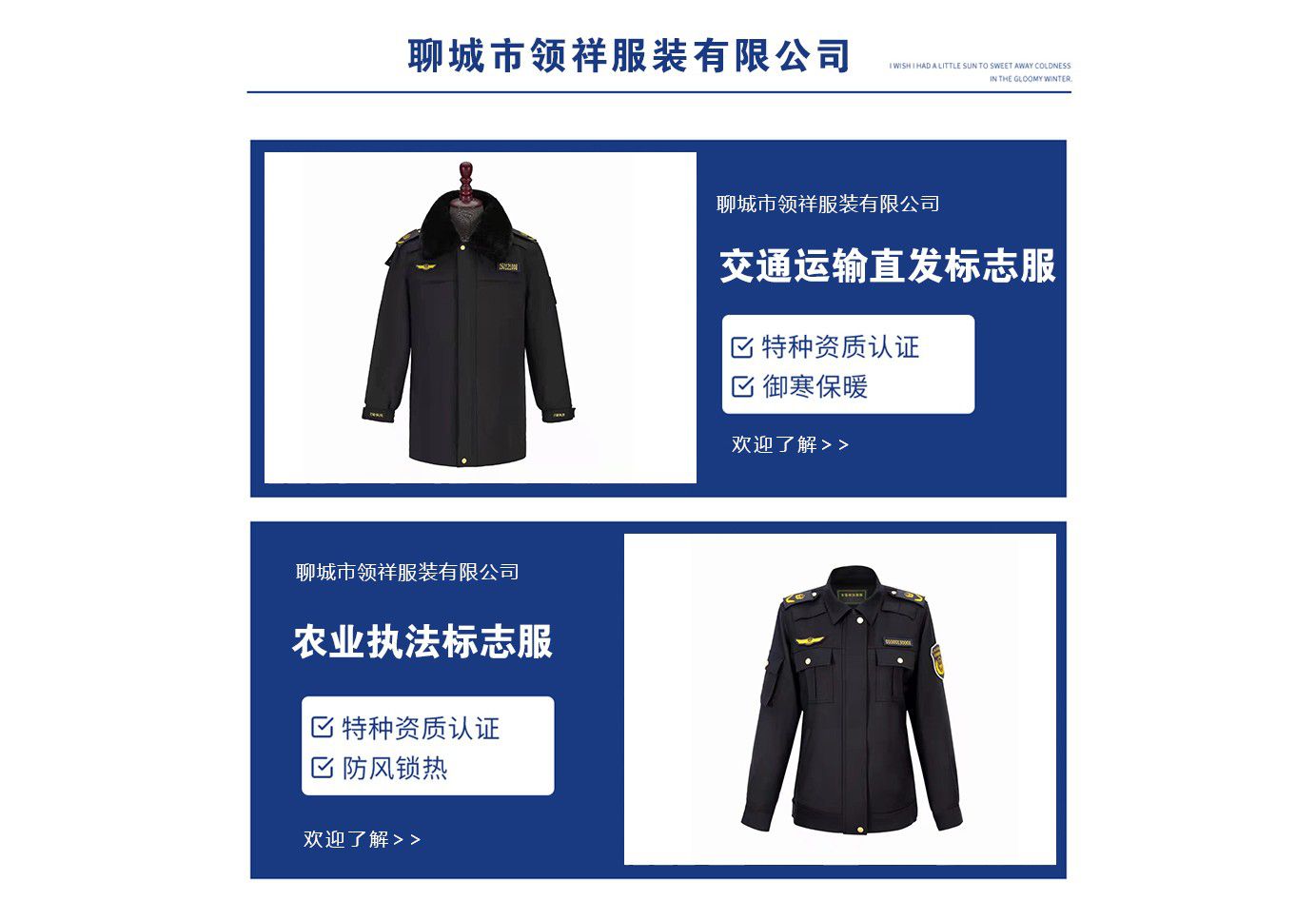 歡迎您訪問(wèn)聊城市領(lǐng)祥服裝有限公司,真誠(chéng)為您服務(wù)。
