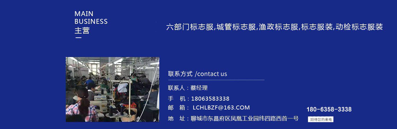 聊城市領(lǐng)祥服裝有限公司主主要生產(chǎn)六部門(mén)標(biāo)志服,城管標(biāo)志服,漁政標(biāo)志服,標(biāo)志服裝,動(dòng)檢標(biāo)志服裝,標(biāo)志服裝廠等產(chǎn)品,款式新穎,做工精細(xì),可根據(jù)用戶要求批量定做。公司成立以來(lái),已為各行業(yè)數(shù)千家企業(yè)、集團(tuán)承制了職業(yè)制服。 多年來(lái),我公司本著“質(zhì)優(yōu)高效,守約重譽(yù)”的經(jīng)營(yíng)理念給廣大新老客戶提供質(zhì)優(yōu)價(jià)廉的產(chǎn)品和售后服務(wù)。憑借良好的信譽(yù),雄厚的實(shí)力,優(yōu)質(zhì)的產(chǎn)品,低廉的價(jià)格愿與新老客戶真誠(chéng)協(xié)作,業(yè)務(wù)遍布全國(guó)各地,是山東優(yōu)秀的標(biāo)志服裝廠,歡迎新老客戶參觀考察! 公司生產(chǎn)的職業(yè)服飾均以標(biāo)準(zhǔn)的質(zhì)量,頂尖精湛的技術(shù)為基礎(chǔ),以客戶的滿意為根本,全程采用電腦輔助設(shè)計(jì)制服,成衣、服飾配件(領(lǐng)帶,領(lǐng)結(jié),紐扣,帽子,企業(yè)標(biāo)志等)均可定織定染,普遍采用進(jìn)口或合資優(yōu)質(zhì)輔料,尺碼按身高和體型劃分或量體定制。每一道工序,每一個(gè)生產(chǎn)環(huán)節(jié)精雕細(xì)琢,充分體現(xiàn)了以質(zhì)量求生存,以信譽(yù)求發(fā)展的理念。并以準(zhǔn)確的市場(chǎng)定位,先進(jìn)的營(yíng)銷(xiāo)理念,贏得廣大客戶的信賴支持! 公司宗旨:“團(tuán)結(jié)、服務(wù)、創(chuàng)新”。公司方針:“專(zhuān)業(yè)創(chuàng)造輝煌,質(zhì)量保證未來(lái),用心換得人心”。熱誠(chéng)歡迎業(yè)界同仁來(lái)公司洽談!...